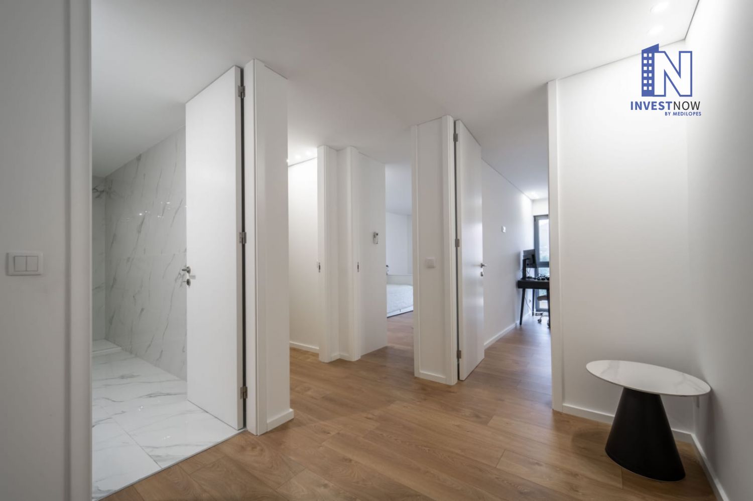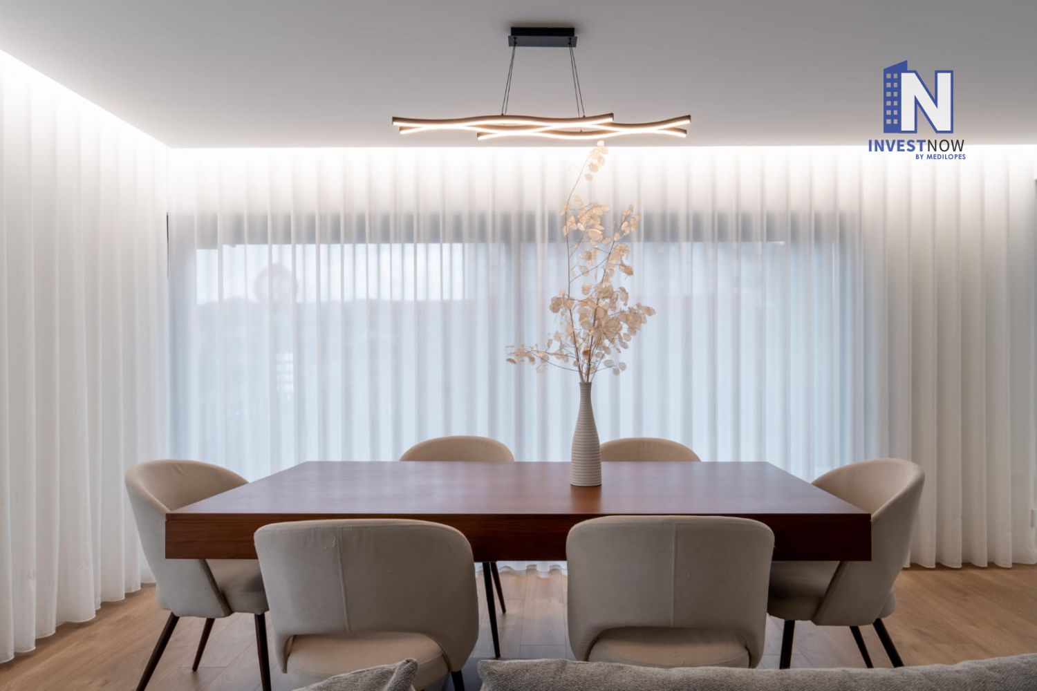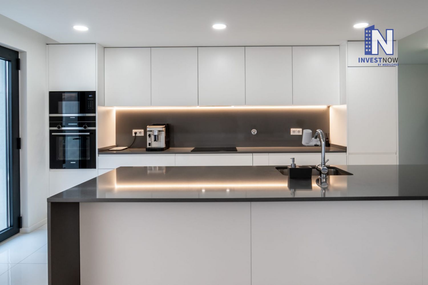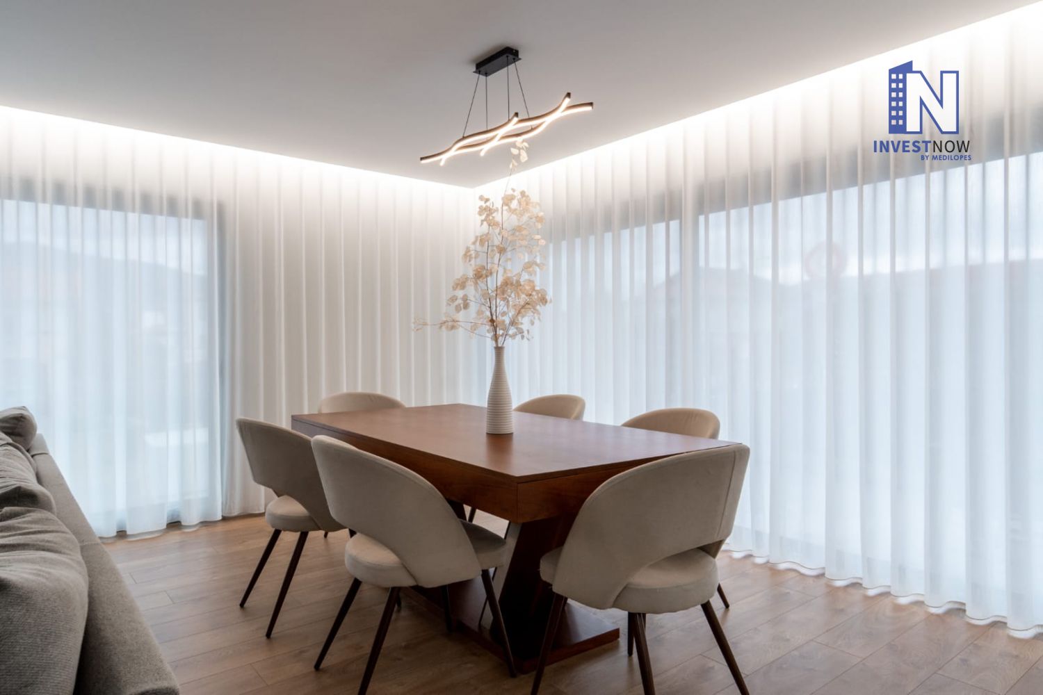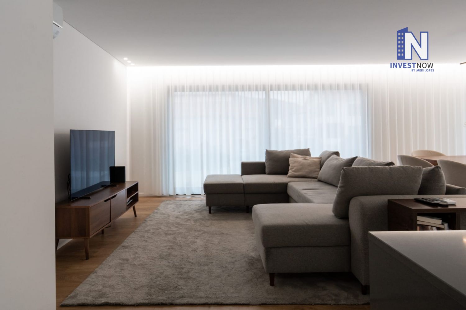 Com 137 m² de área útil, o apartamento encontra-se no primeiro andar e apresenta um excelente estado de conservação. A sala é ampla e luminosa, com acesso direto a um terraço privativo perfeito para momentos de lazer ao ar livre. A cozinha, moderna e totalmente equipada, foi pensada para o dia a dia e integra-se harmoniosamente com o restante espaço.