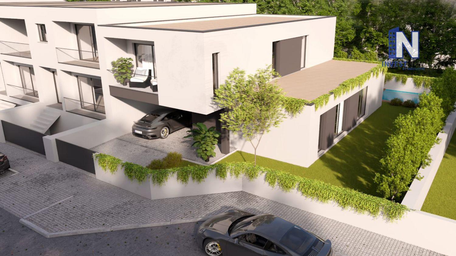 Moradia de Gaveto T3+1 com Piscina em Soutelo – Vila Verde Preço: 440.000€ Área útil: 155 m² Garagem + Lugar exterior | Piscina privativa | Excelentes acabamentos Descubra esta moradia de gaveto contemporânea T3+1, situada numa zona tranquila de Soutelo – Vila Verde, a poucos minutos de Braga. Com uma área útil de 155 m², esta habitação alia design moderno, funcionalidade e qualidade de construção superior, garantindo o máximo conforto e eficiência. Principais características: •Tipologia: T3+1 (3 quartos, 1 escritório) •Área total útil: 155 m² •Área total bruta: 216 m² •Garagem fechada para 1 carro + lugar exterior adicional •Piscina privativa e espaço exterior ajardinado •Exposição solar privilegiada (moradia de gaveto) Distribuição: Piso térreo: •Ampla sala comum (38 m²) com acesso direto ao jardim e piscina •Cozinha equipada com móveis modernos e pedra •Escritório (9 m²) ou quarto de apoio •Lavandaria e zona técnica independentes •W.C. de serviço •Garagem (30 m²) com portão automático Piso superior: •Suite principal (19 m²) com casa de banho privativa e varanda •Dois quartos (13.5 m² e 16.2 m²) com roupeiros embutidos •Casa de banho completa de apoio •Varandas amplas com boa luminosidade Acabamentos e equipamentos: •Caixilharia em alumínio com rutura térmica e vidros duplos Guardian Sun •Estores elétricos em alumínio •Pré-instalação de ar condicionado (5 pontos) •Aquecimento de águas com bomba de calor AQS Gold 280L •Pavimentos em cerâmico e soalho flutuante nos quartos •Tectos falsos com iluminação embutida •Portas e armários lacados a branco mate •Cozinha moderna (sem eletrodomésticos) •Videoporteiro e portão elétrico •Arranjos exteriores em granito azul, com pavimento em cubo e zonas ajardinadas Exterior: •Piscina privativa em zona recatada •Terraço e alpendre perfeitos para lazer •Jardim de fácil manutenção